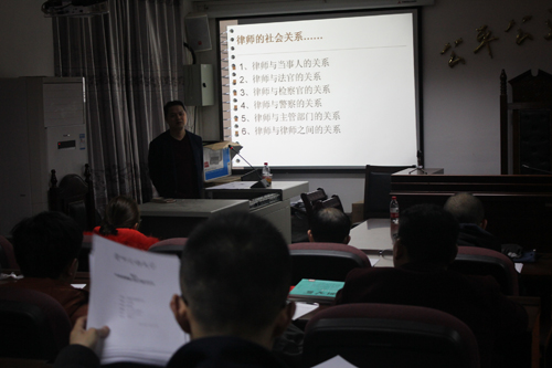 王克春主任结合自己执业以来的见闻与经验,分别从律师与当事人的关系、律师与法官的关系、律师与检察官的关系、律师与警察的关系、律师与主管部门的关系以及律师与律师之间的关系共六个方面向同学们介绍了律师在执业过程中正确地处理社会关系的重要性。课间,王克春主任用PPT的形式向同学们展示了听君律师事务所的发展情况及律师风采。在讲座的最后,王克春主任以热门事件“老太太偷水仙包饺子后上门索赔”的案子为例,向同学们耐心地讲解了律师在接到案件后应该怎样逐步深入地分析案件。