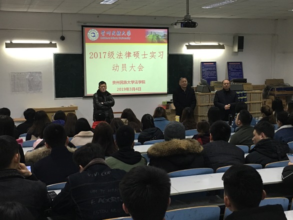 3月4日上午10:30,bw必威西汉姆联在12-102教室召开了实习动员大会,bw必威西汉姆联院长宋强教授、党委书记盘淼教授、副院长张帆教授出席了大会,以及2017级法律硕士全体同学参加了大会。大会由副院长张帆主持。
