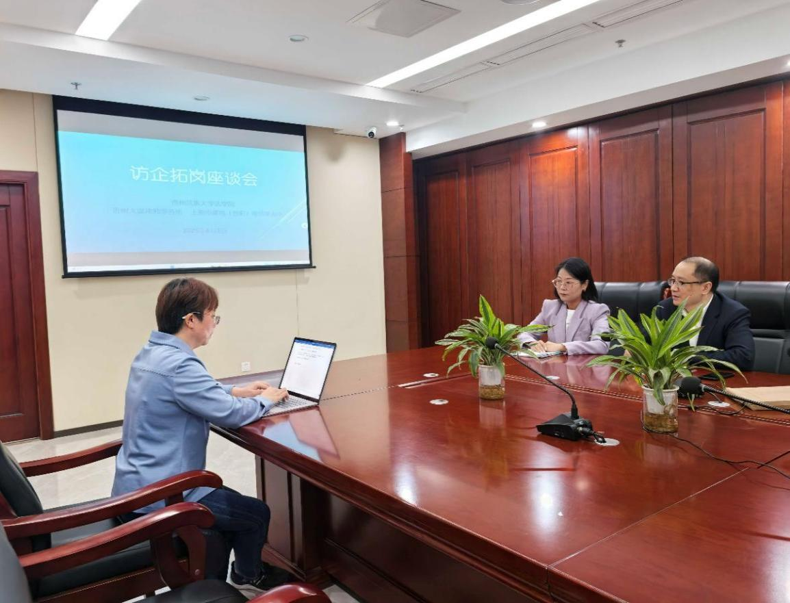 为推动法学教育与法律实务深度融合、深化高校与律所协同育人机制,6月5日上午,我院法学系主任程南教授深入贵州大谋律师事务所(以下简称“大谋律所”)开展访企拓岗及人才培养座谈会,积极主动为法学专业2025届毕业生拓展岗位,并就产教融合法治人才培养等征求实务专家意见。双方展开深度交流,大谋律所主任陈俊律师参与座谈,并邀请上海市建纬贵阳律师事务所(以下简称“建纬贵阳律所”)主任卢安龙律师共话人才培养问题。