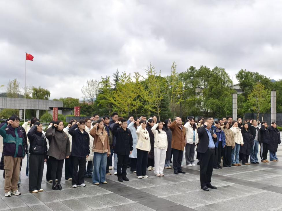 随后,在学院党委书记柏云兴同志的领誓下,面对息烽集中营革命历史纪念馆广场上的党旗和《忠魂曲》群雕,全体党员高举右拳,重温入党誓词。“我志愿加入中国共产党,拥护党的纲领,遵守党的章程,履行党员义务,执行党的决定,严守党的纪律,保守党的秘密,对党忠诚,积极工作,为共产主义奋斗终身,随时准备为党和人民牺牲一切,永不叛党。”铿锵有力的誓言在广场上空回荡,表达了大家继承先烈遗志、永葆政治本色、为共产主义事业奋斗终身的坚定决心。